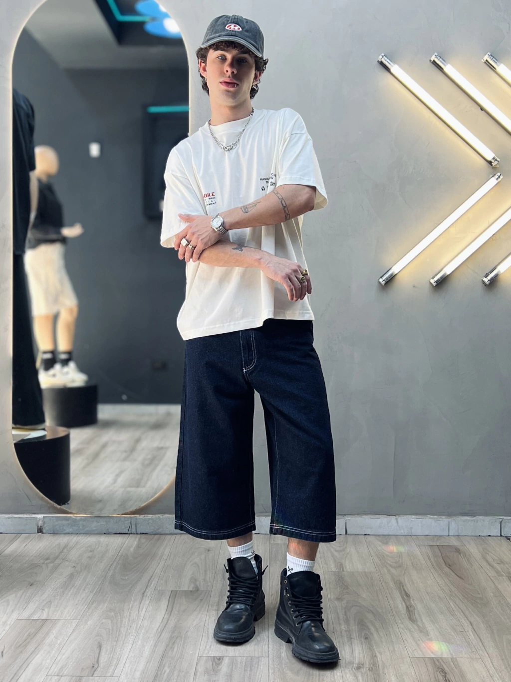 Para referencia de medida, el modelo mide 1.76m, usa Talle 40.