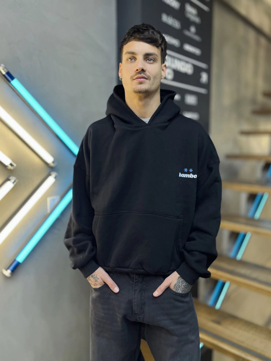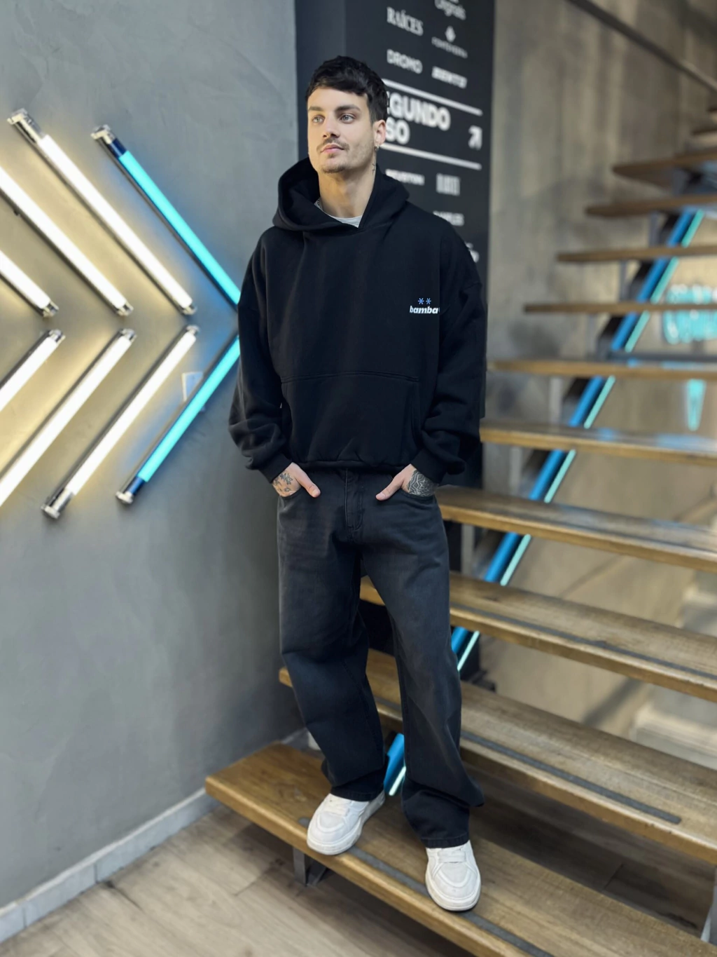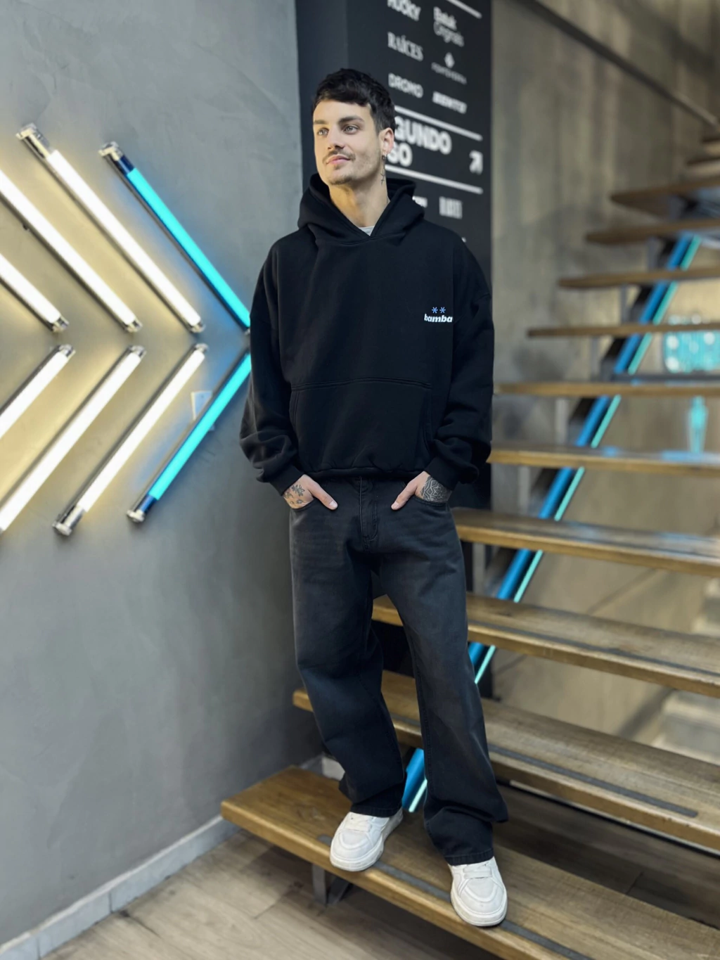 No es un buzo más. Viene en negro, un clásico, con textura y detalles en color que suman sin sobrecargar. Calce amplio, cómodo y con esa energía lowkey que levanta cualquier look. Podes combinarlo con el Jean Rebel Grey y la rompes con ese outfit 💣