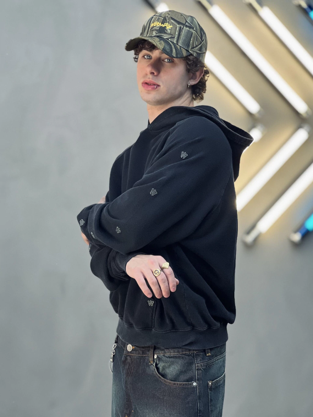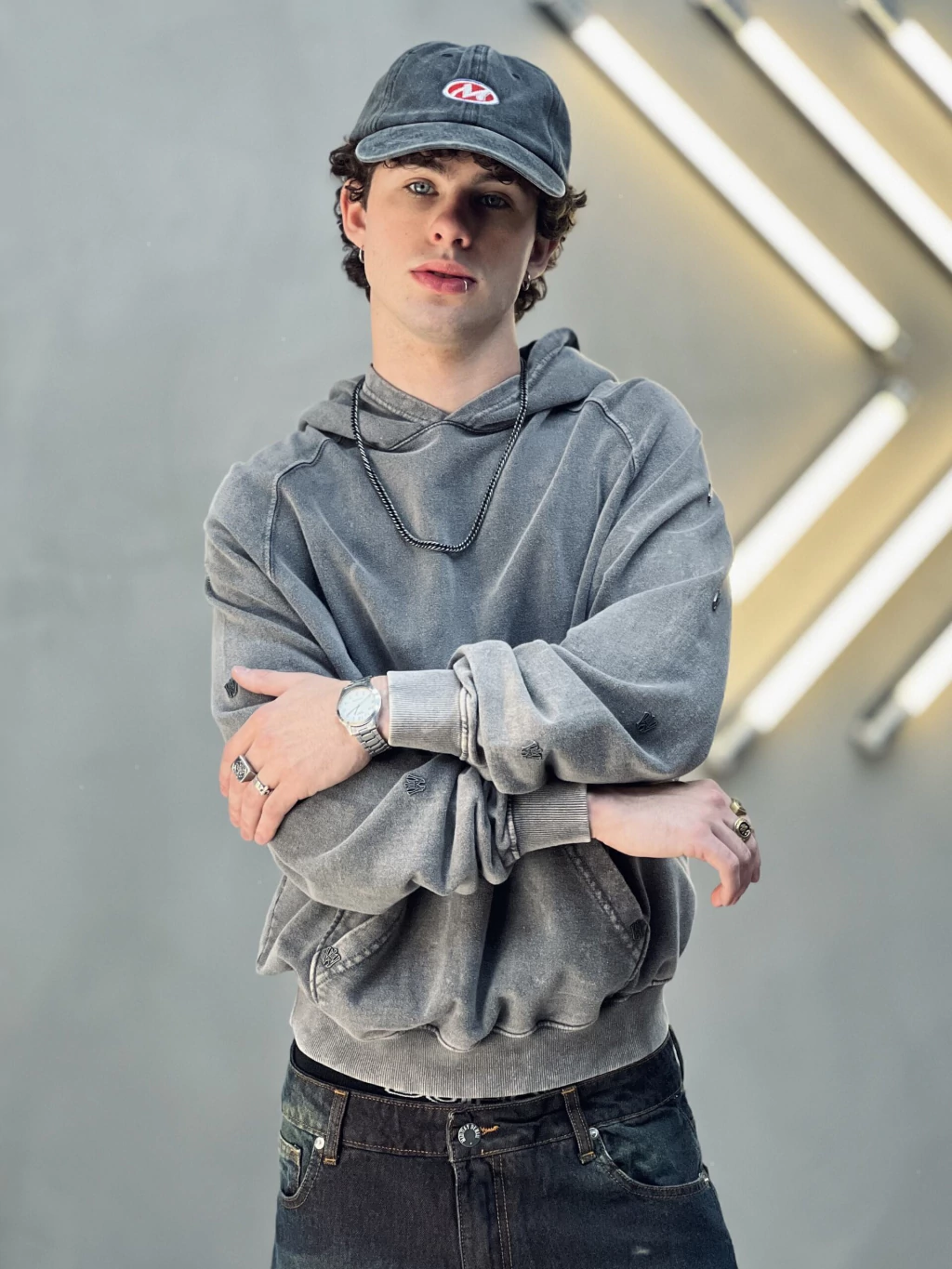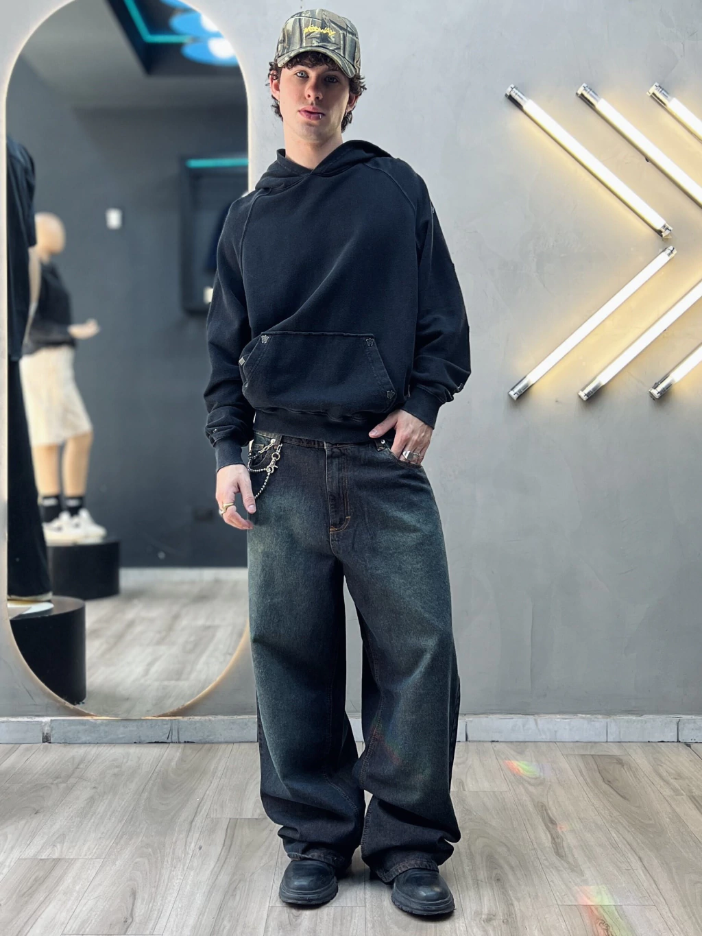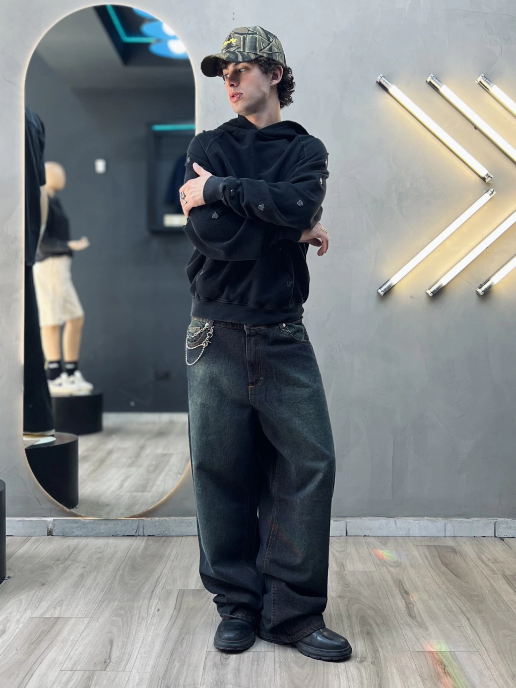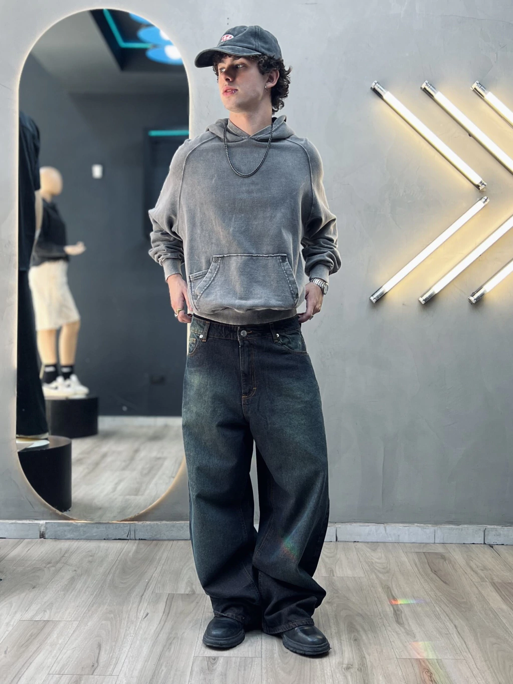 Para referencia de medida, el modelo mide 1.76m, usa Talle M.