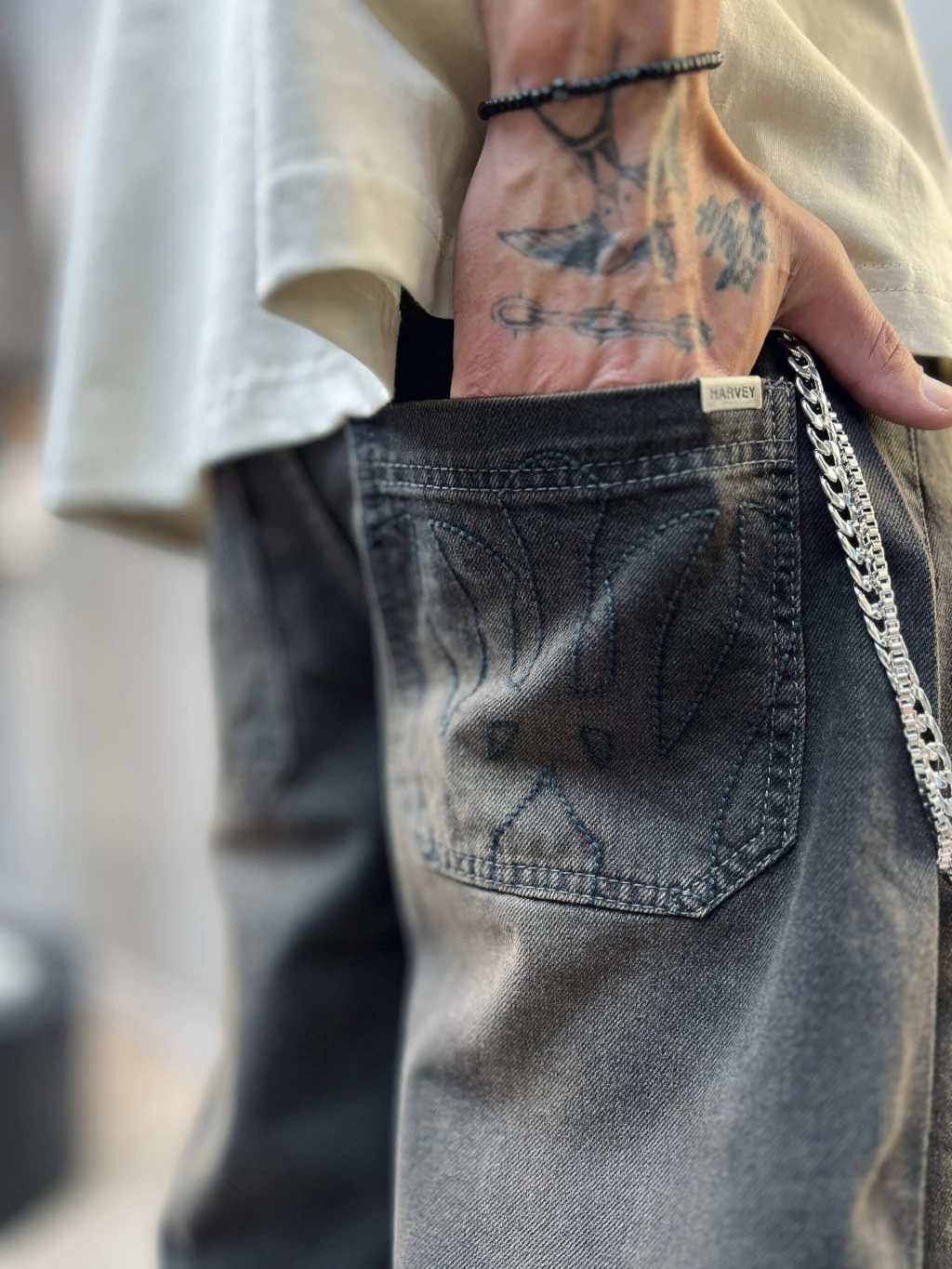 Tiene un diseño baloon, es decir, holgado en la parte superior y que se estrecha en los tobillo, tambien tiene unos detalles bordados en los bolsillos traseros que le dan el toque.