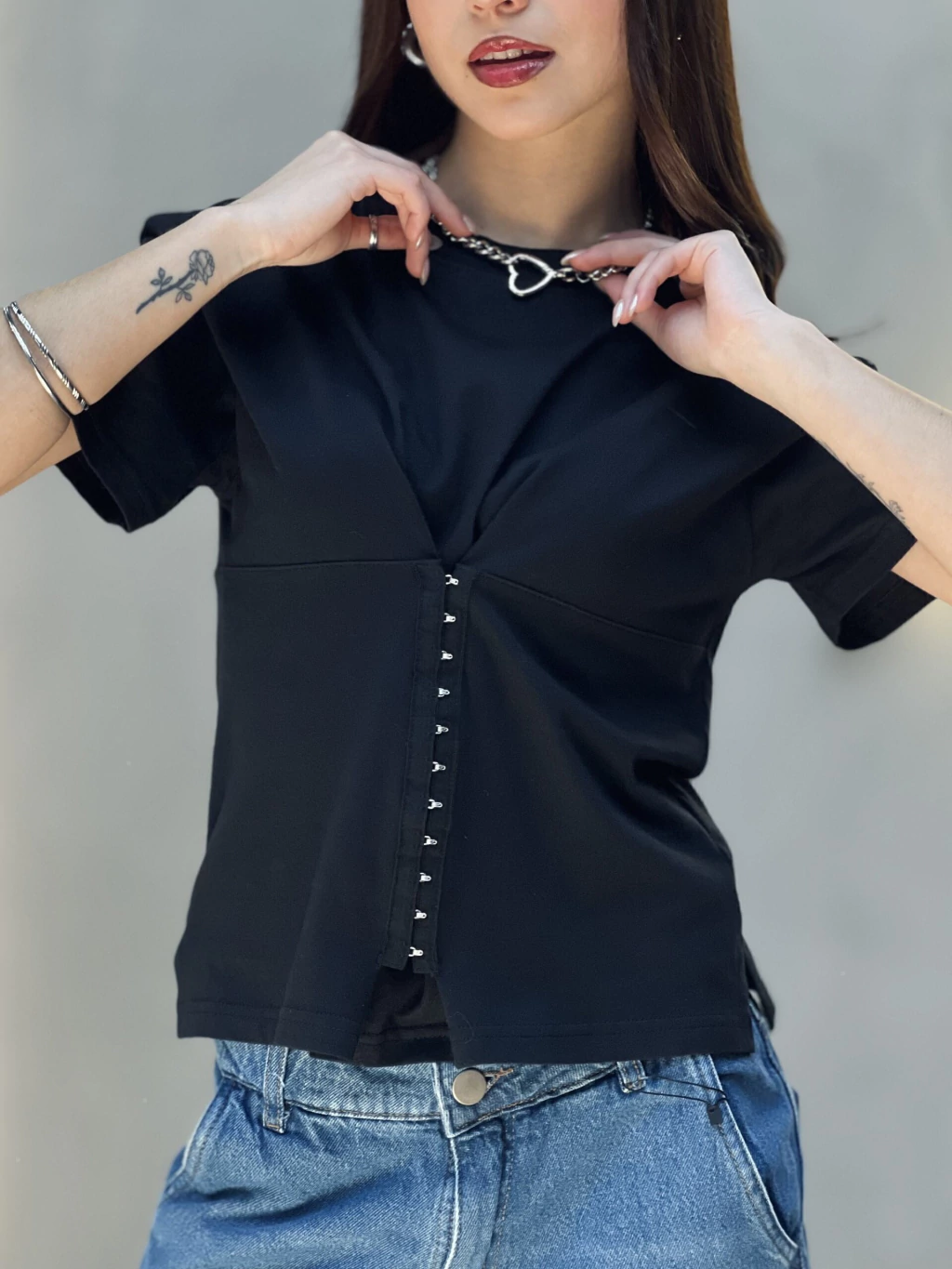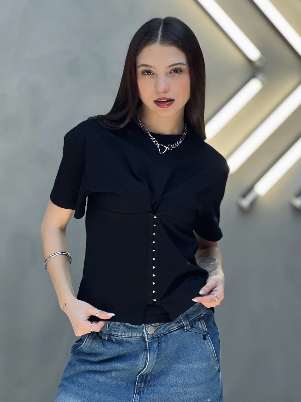 Para referencia de medida, la modelo mide 1.62m, usa Talle S.