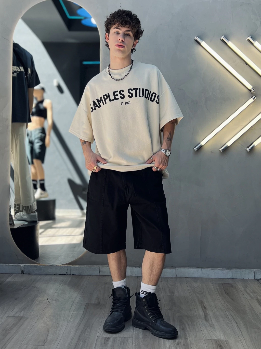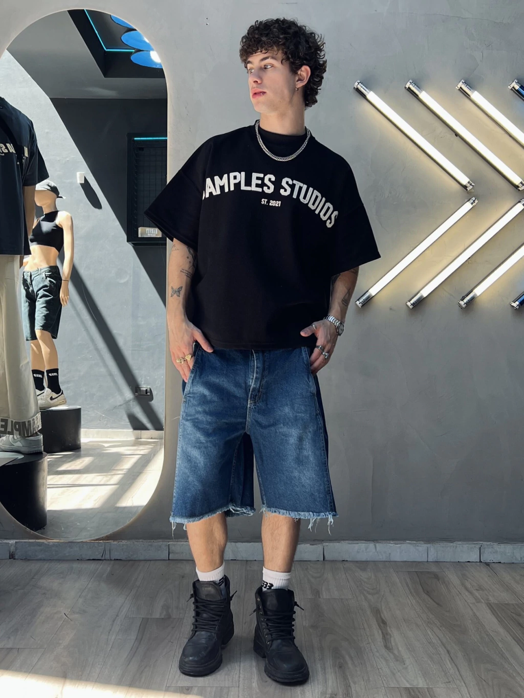Para referencia de medida, el modelo mide 1.74m, usa Talle S.