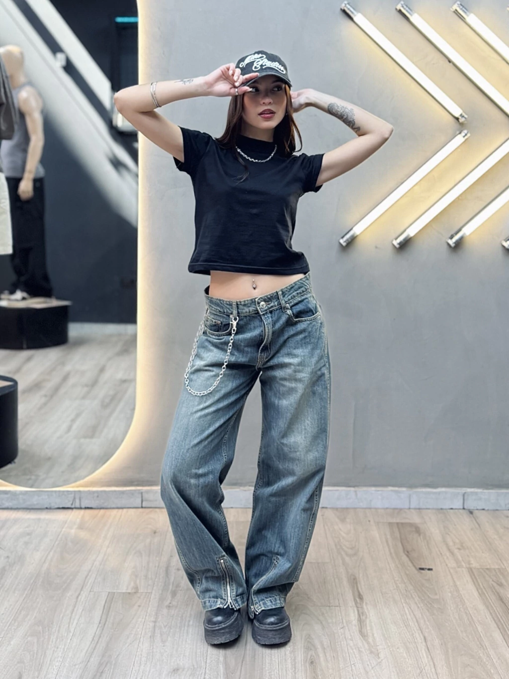 Para referencia de medida, la modelo mide 1.62m, usa Talle S.